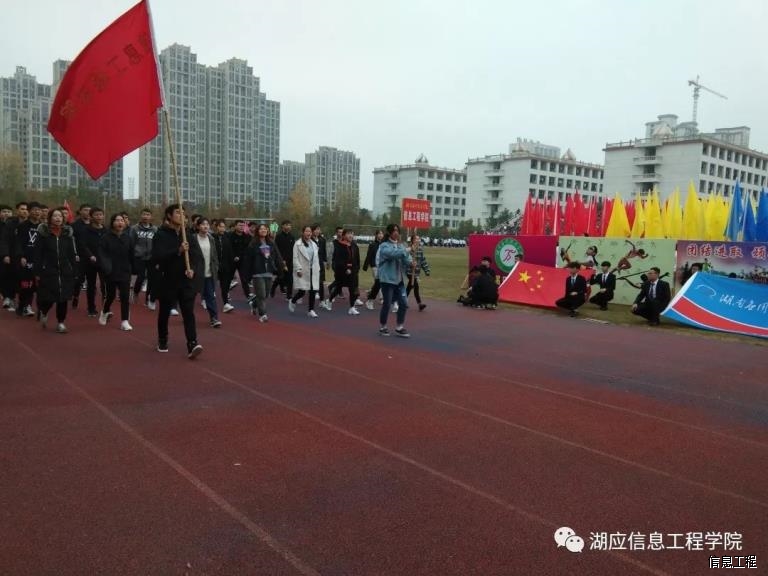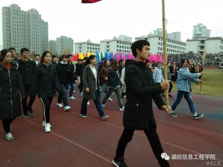 看到我们信息的代表团,他们气势昂扬,神采奕奕地向主席台走去,迈着铿锵有力的步伐,他们用响亮的口号"青春如火,超越自我,信息工程,奋勇前行"表达着我们信息的精神风貌和对运动的热情,看台上人声鼎沸,现场气氛十分火热。