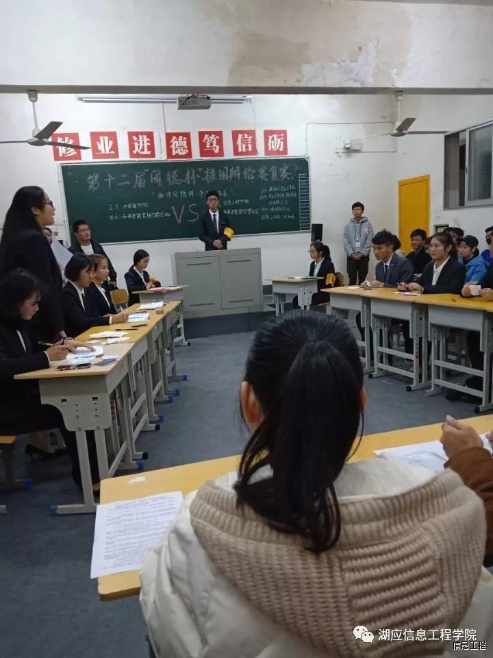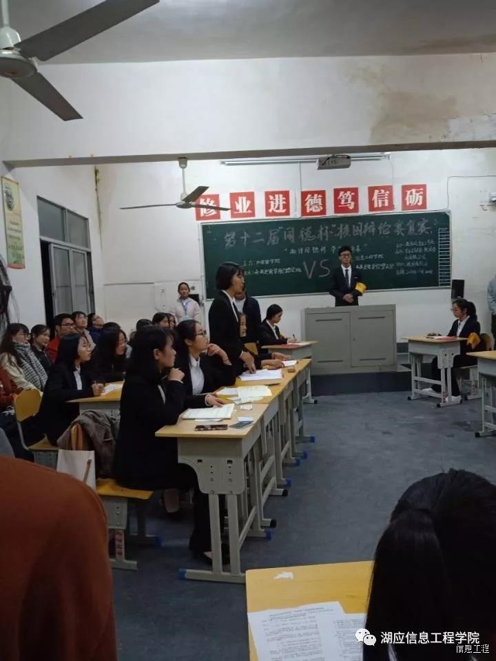 由教务处,学生工作处主办的,学生会学习部,校团委社团联合会承办的,校园电视台协办的十二届“同德杯”校园辩论赛复赛于11月20日19:00在41栋505教室展开。