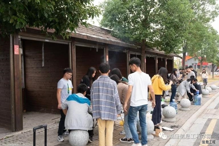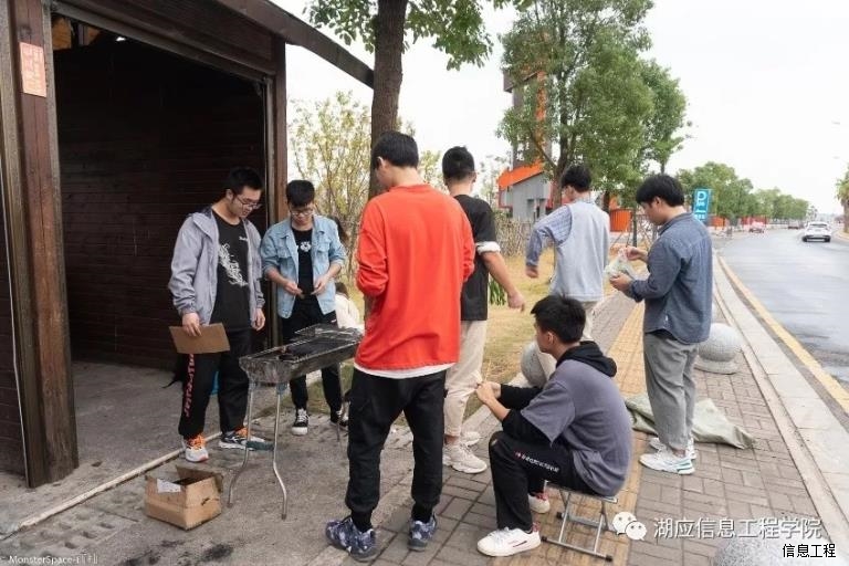 女生分批买食材、洗食材、串食材,男生则负责搬运烧烤工具。