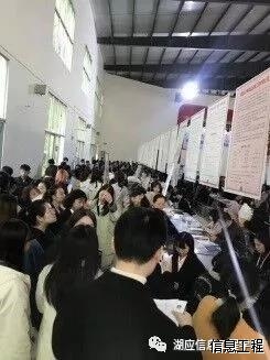 在各参会人员完成了紧张有序的筹备工作后,招聘会于上午9:00正式拉开帷幕,毕业生们都怀着极大的热情,带着精心准备的简历和自荐信来到各自理想公司的展位前,就培训机会、工作环境、对员工的规划等问题向招聘单位进行咨询。各个企业的招聘负责人对于毕业生的所提的问题也一一进行了回答。应届毕业生们在面对企业招聘负责人所提的问题也是细心作答、大胆地说出自己的看法,在与单位的交流中表现出了我湖应学子稳重、积极的心态。