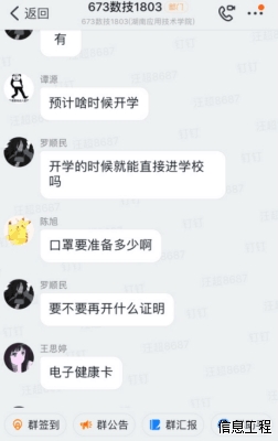 在此次心理主题班会上,各班辅导员均着重强调了,目前疫情尚未完全解除,大家仍要保持风险危机意识,不能放松大意,希望同学们继续按时上报个人日常健康情况,认真填报疫情防控信息;其次,在未接收到学院的开学通知前,严格按照学校规定不允许私自提前买票到校;同时叮嘱大家,“停学不停课”在家里也要高效率的进行线上学习,要按时按量完成学习任务,保证学习质量;最后,就同学们关心的开学后是否配戴口罩、如何就餐、能否收取快递等问题以及个别同学出现的一些困难,在线上进行了热烈的交流,大家一起支招解决。