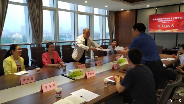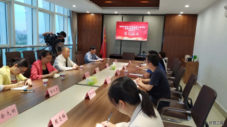 杨斌台长代表鼎城区融媒中心对李敏校长、彭进香院长等一行的到来,表示热烈欢迎。并对融媒中心目前发展现状、人才引进、主营业务、未来发展规划等做了详细的介绍。李敏校长则从学校办学定位、发展规模、人才培养要求等方面进行深入阐述。彭进香院长就信息工程学院目前教育教学、师生情况作了详细的介绍。杨台长高度评价了湖南应用技术学院的人才培养模式以及为服务地方经济发展做出的努力。双方一致认为,开展校企深度合作,实现“优势互补、互利共赢”,是湖南应用技术学院和鼎城区融媒体中心发展的共同愿望,前景广宽。最后双方就人才交流、资源共享、学生实习实训等具体事项达成共识,确定融媒体中心“为湖南应用技术学院人才培养基地“,湖南应用技术学院为“融媒体中心产品研发暨员工培训基地”,并签定湖南应用技术学院与鼎城区融媒体中心战略合作协议。