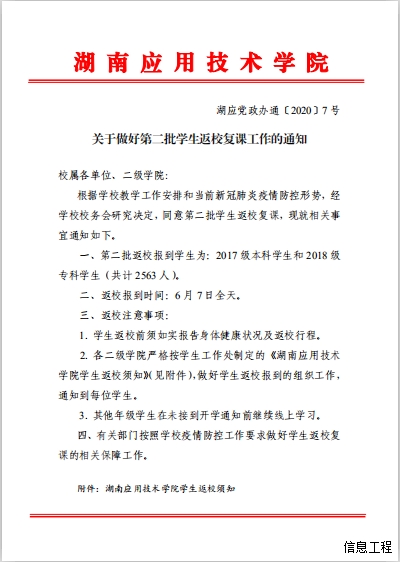 关于做好第二批学生返校复课工作的通知
