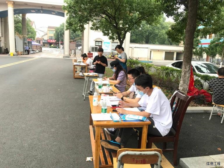 上午8点钟之前,各班级辅导员已经布置好接待现场,静待学生到达。从学生进入校门开始,辅导员们便开始逐一查验学生信息,审核身份、查验健康码、体温检测、做好返校登记等工作并统一更换学院下发的一次性医用口罩。天气炎热,辅导员们工作热情丝毫不减,一丝不苟的奋斗到晚上六点。