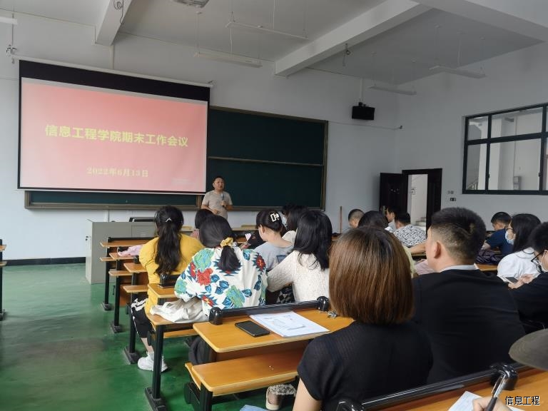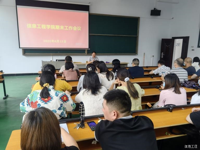 6月13日下午4:30,信息工程学院期末工作会议在致远楼101召开。院长彭进香,教学副院长周云才,学工副院长李皓以及全院教职工参加会议。
