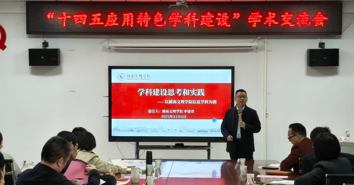 为深入推进湖南省“十四五”应用特色学科——计算机科学与技术的建设工作,进一步深化产学研协同创新机制,全面提升学科建设内涵与专业人才培养质量,信息工程学院于2025年11月6日在A4-206会议室成功举办了一场高规格的学科建设学术交流会。本次会议旨在汇聚学界智慧,共探学科发展路径,特邀校内外多位知名专家学者出席,为学科未来发展擘画蓝图、建言献策。