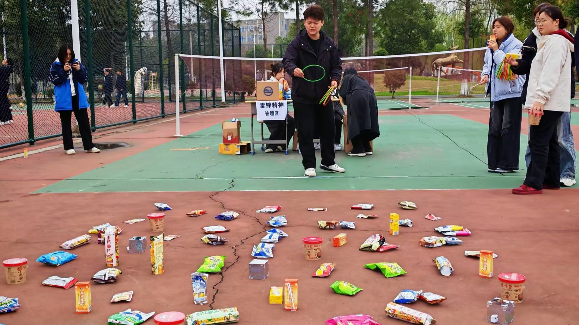 本次活动打破传统学雷锋宣讲模式,以趣味互动为核心设计多元环节,将雷锋知识学习与实践体验相结合。活动设置雷锋知识问答、“我有你没有”雷锋版趣味游戏、主题套圈三大环节,参与学生需作答雷锋生平、经典语录等知识题获取套圈资格,游戏中同学们踊跃分享好人好事,获胜者可额外获得套圈机会,现场氛围热烈,大家在欢声笑语中深化了对雷锋精神的理解。