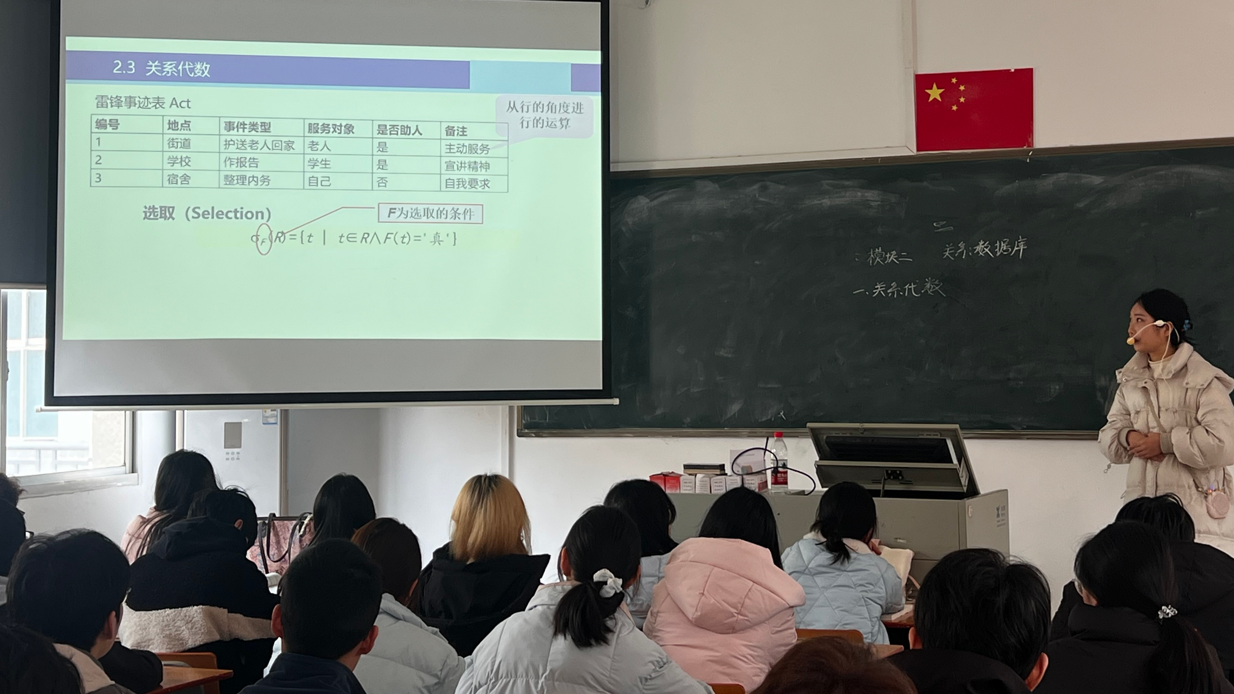屠郡老师在《数据库原理及应用》的关系代数教学中,创新设计雷锋事迹数据库实操案例,让雷锋精神在实践操作中鲜活起来。他引导学生运用选择、投影等关系代数操作,查询“雷锋帮助过的人”“雷锋好事记录”等内容,让学生在动手实践、掌握专业技能的同时,沉浸式感悟雷锋无私奉献、乐于助人的崇高精神,实现专业知识学习与雷锋精神传承的双向融合。