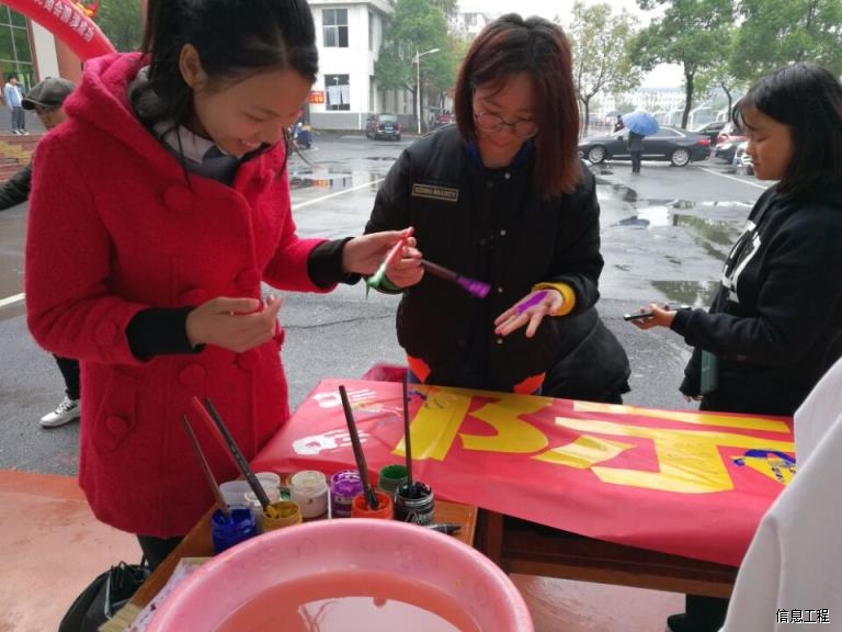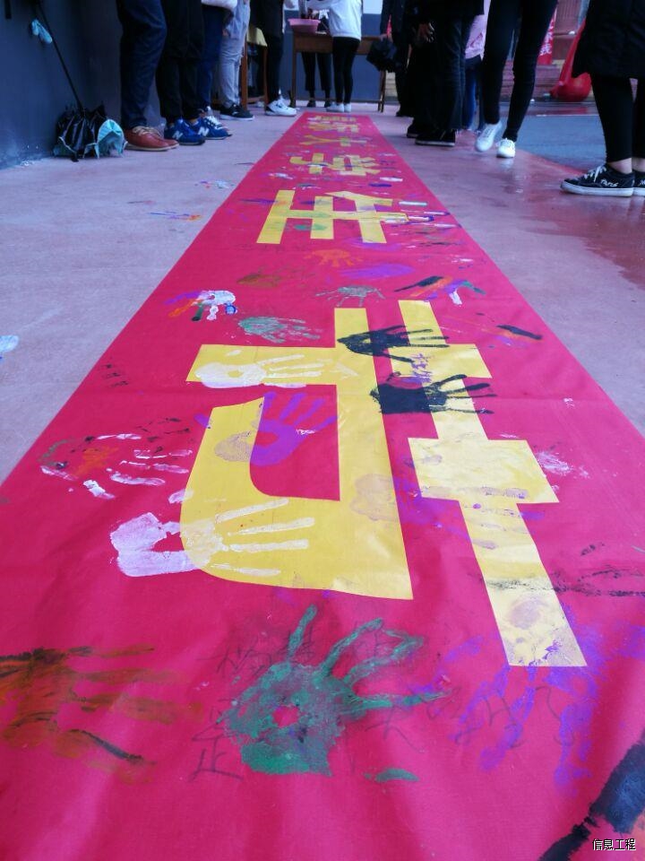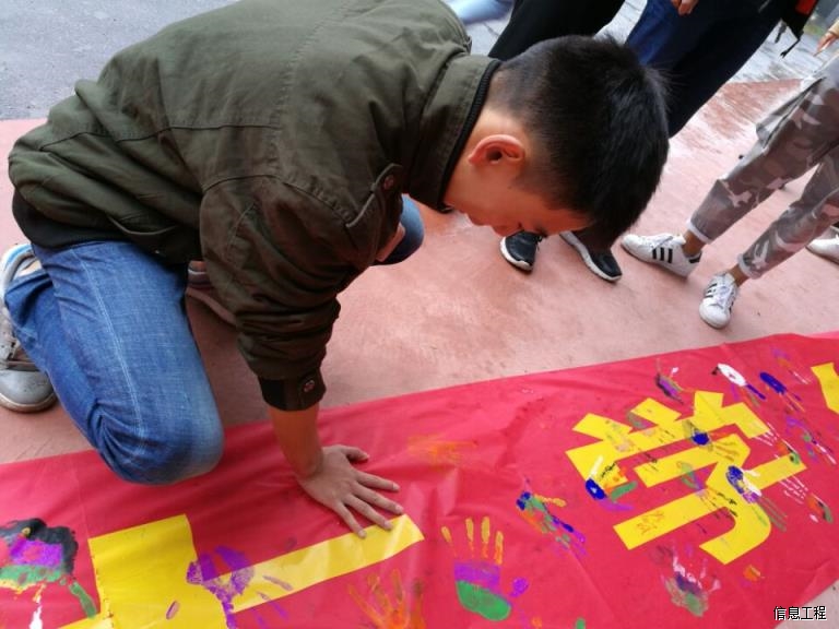 在这个国际大节日里,信息工程学院团总支发起了按手印签名的活动,五彩的手印渲染着我们的青春,飞舞的签名象征着我们的独特。