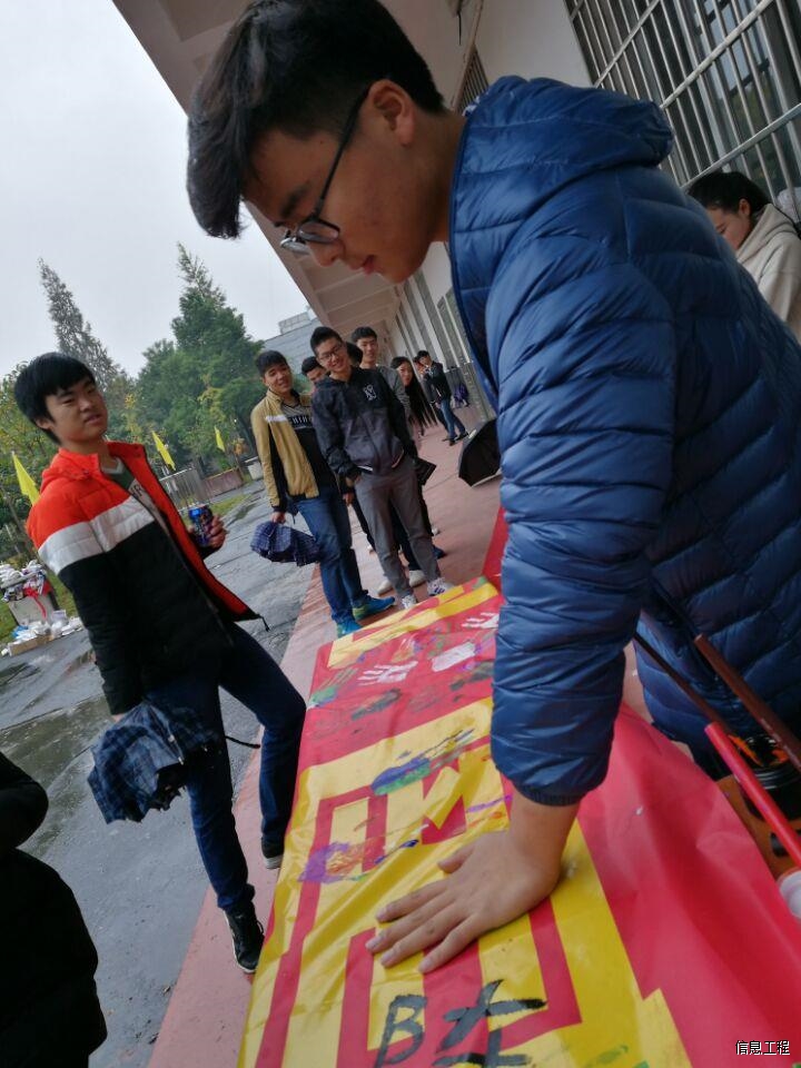 信息工程学院团总支的各位干部更是亲切的为同学抹上颜料,这是一个有爱的活动,促进了他们深深的友情。